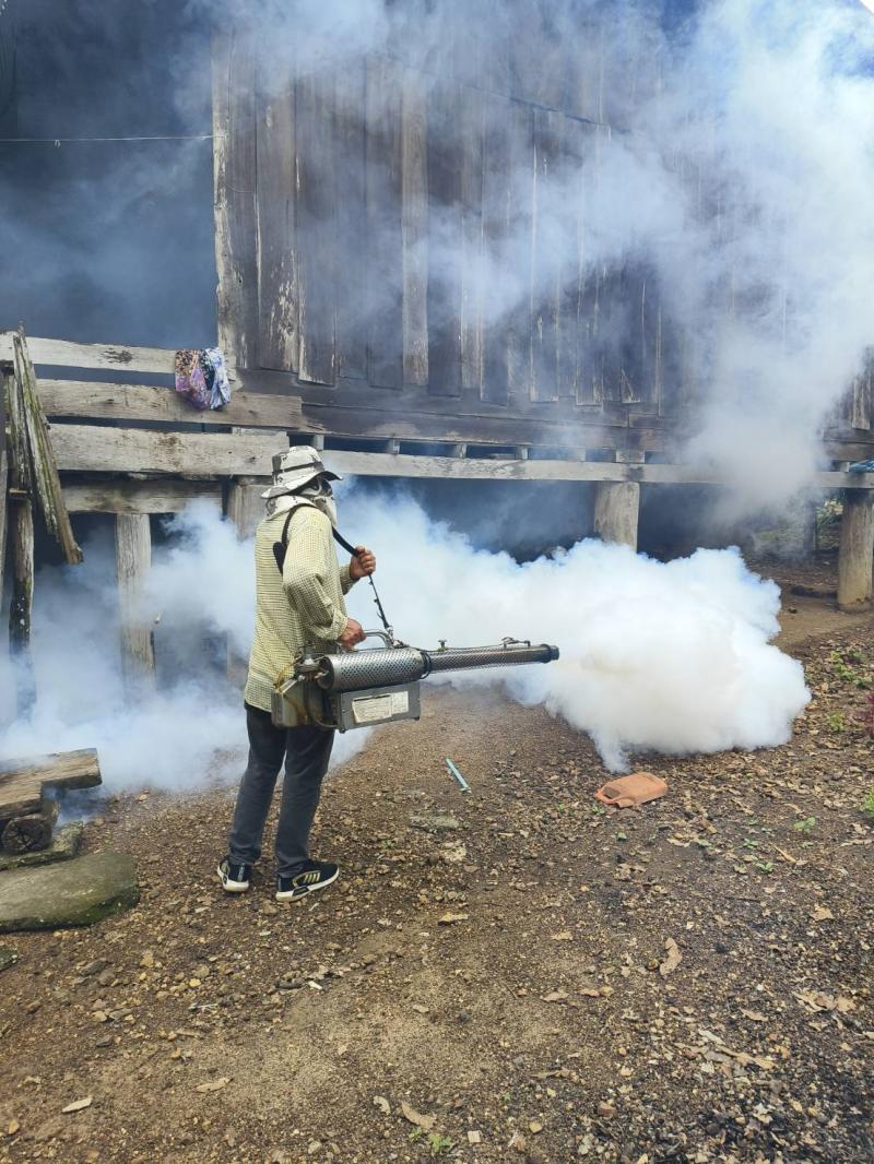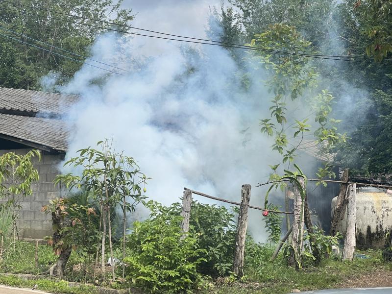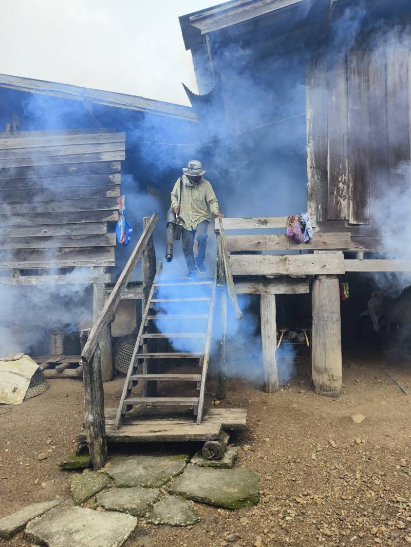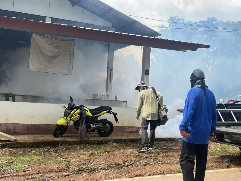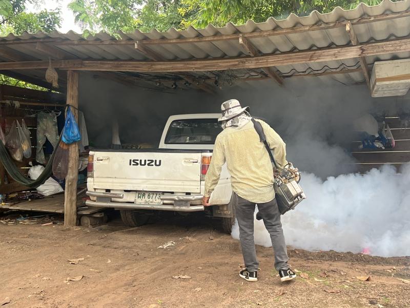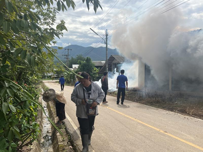 วันที่ 2 กันยายน 2567 องค์การบริหารส่วนตำบลแม่ลาน โดย นายโสภณ มีมัง นายกองค์การบริหารส่วนตำบลแม่ลาน มอบหมายให้ นางสาวนริศรา ใจสุยะ เจ้าพนักงานสาธารณสุข และ เจ้าหน้าที่องค์การบริหารส่วนตำบลแม่ลาน ร่วมกับ รพ.สต.แม่ลาน และ อสม.บ้านหนองมะล้อ ลงพื้นที่ดำเนินการพ่นหมอกควัน และสำรวจลูกน้ำ ทำลายแหล่งเพาะพันธุ์ลูกน้ำยุงลาย เพื่อกำจัดยุงตัวแก่ และควบคุมการระบาดของโรคไข้เลือดออก บริเวณบ้านผู้ป่วย บ้านหนองมะล้อ หมู่ที่ 2 ตำบลแม่ลาน อำเภอลี้ จังหวัดลำพูน ระยะ 100 เมตร ครั้งที่ 3