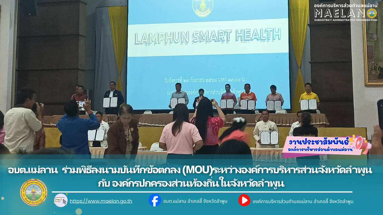 วันที่ 23 กันยายน 2568 เวลา 13.30 น. องค์การบริหารส่วนตำบลแม่ลาน โดย นายโสภณ มีมัง นายกองค์การบริหารส่วนตำบลแม่ลาน มอบหมายให้เจ้าหน้าที่องค์การบริหารส่วนตำบลแม่ลาน ร่วมพิธีลงนามบันทึกข้อตกลง... [23 กันยายน 2568]