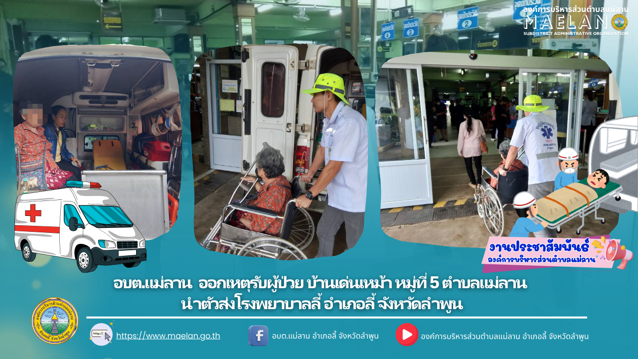 วันที่ 1 กันยายน 2568 องค์การบริหารส่วนตำบลแม่ลาน โดย นายโสภณ มีมัง นายกองค์การบริหารส่วนตำบลแม่ลาน มอบหมายให้เจ้าหน้าที่กู้ชีพองค์การบริหารส่วนตำบลแม่ลาน ออกเหตุรับผู้ป่วย บ้านเด่นเหม้า หมู่ที่ 5... [1 กันยายน 2568]