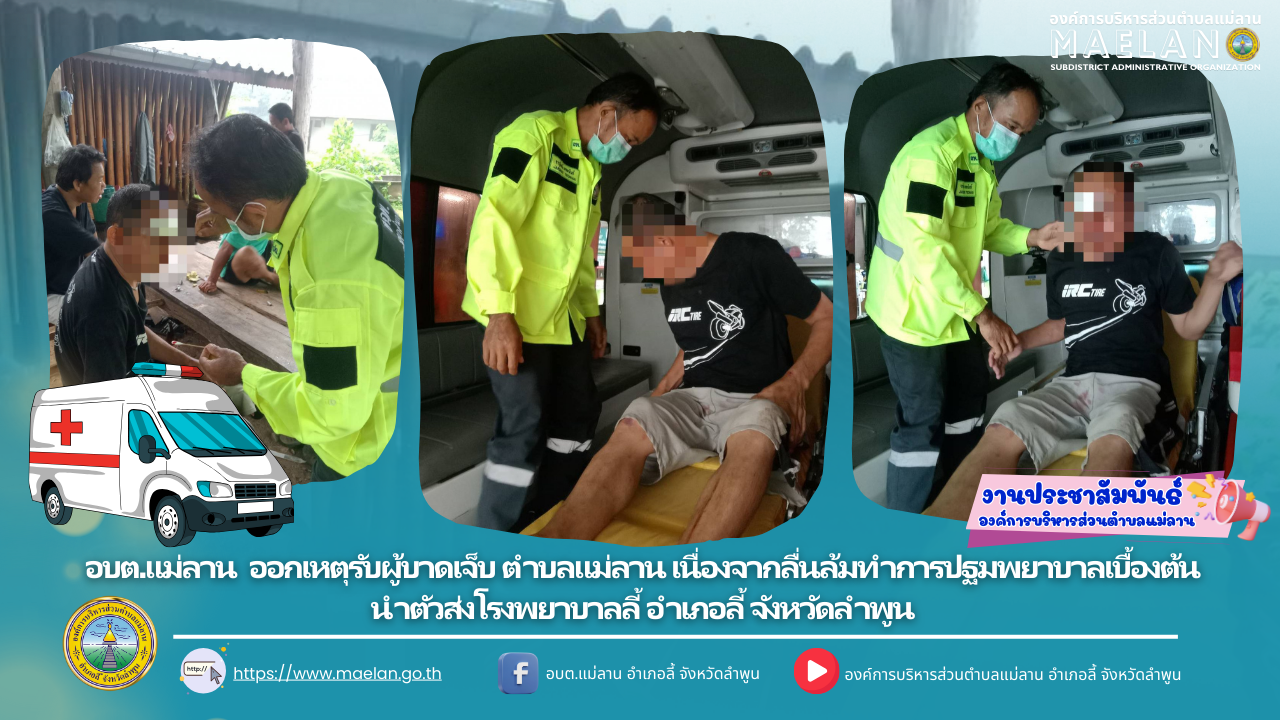 วันที่ 31 สิงหาคม 2568 องค์การบริหารส่วนตำบลแม่ลาน โดย นายโสภณ มีมัง นายกองค์การบริหารส่วนตำบลแม่ลาน มอบหมายให้เจ้าหน้าที่กู้ชีพองค์การบริหารส่วนตำบลแม่ลาน ออกเหตุรับผู้บาดเจ็บ ตำบลแม่ลาน... [31 สิงหาคม 2568]