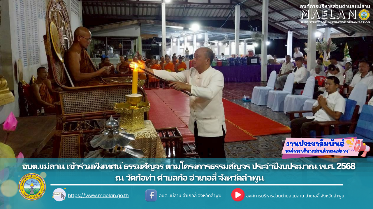 วันที่ 21 สิงหาคม 2568 เวลา 08.30 น. องค์การบริหารส่วนตำบลแม่ลาน โดย นายโสภณ มีมัง นายกองค์การบริหารส่วนตำบลแม่ลาน มอบหมายให้ นางสาวนริศรา ใจสุยะ เจ้าพนักงานสาธารณสุขฯ พนักงานและเจ้าหน้าที่องค์การบริหารส่วนตำบลแม่ลาน ... [21 สิงหาคม 2568]