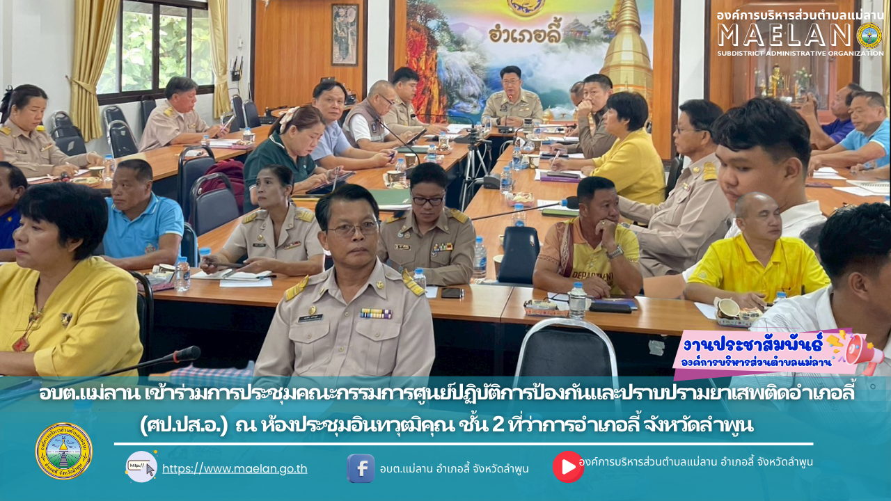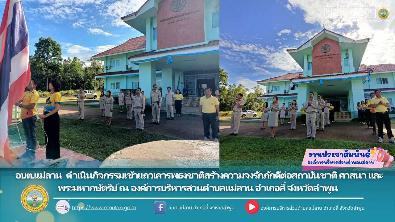 วันที่ 18 สิงหาคม 2568 เวลา 09.00 น. องค์การบริหารส่วนตำบลแม่ลาน นำโดย นายโสภณ มีมัง นายกองค์การบริหารส่วนตำบลแม่ลาน พร้อมด้วย นายสมพงษ์ ด้วงประสิทธิ์ ปลัดองค์การบริหารส่วนตำบลแม่ลาน ข้าราชการ พนักงาน... [18 สิงหาคม 2568]
