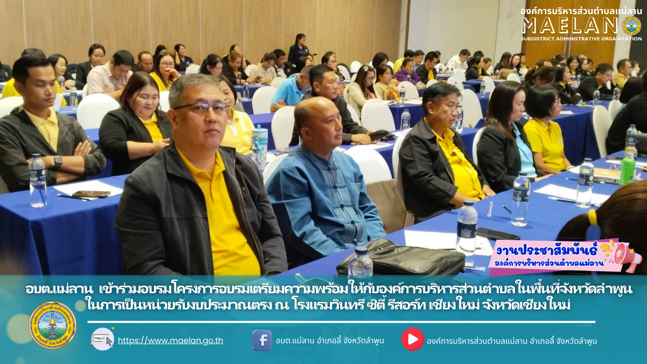 วัน จันทร์ ที่ 18 มิถุนายน เวลา 08.30 น. องค์การบริหารส่วนตำบลแม่ลาน โดย นายโสภณ มีมัง นายกองค์การบริหารส่วนตำบลแม่ลาน มอบหมายให้ นายเสาร์คำ แก้วปลูก รองนายกองค์การบริหารส่วนตำบลแม่ลาน... [18 สิงหาคม 2568]