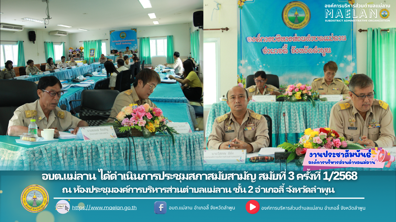 วันที่ 4 สิงหาคม 2568 เวลา 09.00 น. สภาองค์การบริหารส่วนตำบลแม่ลาน ได้ดำเนินการประชุมสภาสมัยสามัญ สมัยที่ 3 ครั้งที่ 1/2568 เพื่อพิจารณาให้ความเห็นชอบร่างข้อบัญญัติงบประมาณรายจ่าย ประจำปีงบประมาณ พ.ศ. 2569... [4 สิงหาคม 2568]