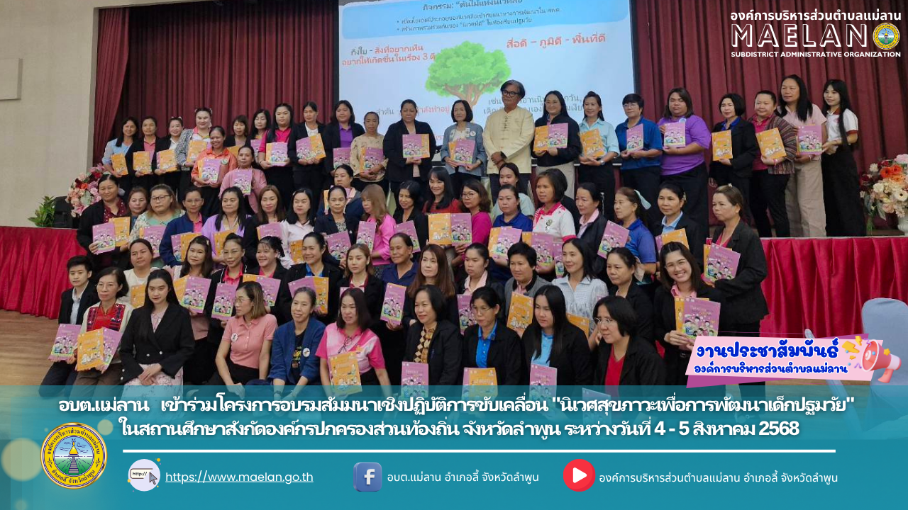 วันที่ 4 - 5 สิงหาคม 2568 องค์การบริหารส่วนตำบลแม่ลาน โดย นายโสภณ มีมัง นายกองค์การบริหารส่วนตำบลแม่ลาน มอบหมายให้ นางกาบแก้ว มาติ ครูศูนย์พัฒนาเด็กเล็กบ้านผาต้าย พร้อมด้วย นางไพรรีน กัญจนะ... [5 สิงหาคม 2568]