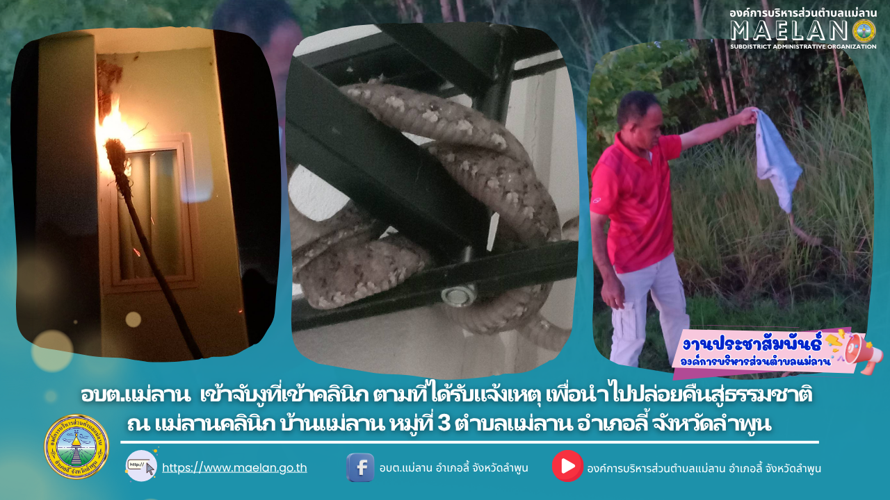 วันที่ 3 สิงหาคม 2568 องค์การบริหารส่วนตำบลแม่ลาน โดย นายโสภณ มีมัง นายกองค์การบริหารส่วนตำบลแม่ลาน มอบหมายให้เจ้าหน้าที่องค์การบริหารส่วนตำบลแม่ลาน เข้าจับงูที่เข้ามาในบริเวณคลินิก ตามที่ได้รับแจ้งเหตุ... [3 สิงหาคม 2568]