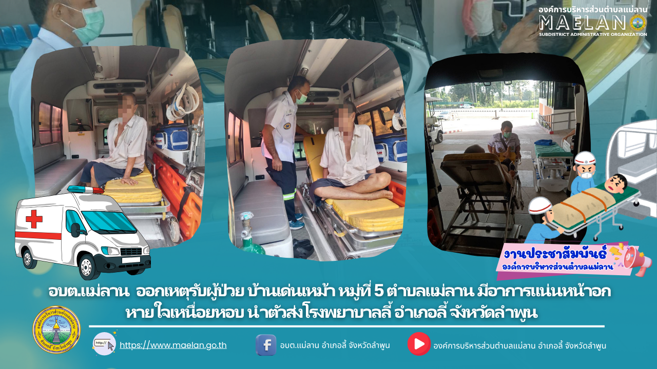 วันที่ 5 สิงหาคม 2568 องค์การบริหารส่วนตำบลแม่ลาน โดย นายโสภณ มีมัง นายกองค์การบริหารส่วนตำบลแม่ลาน มอบหมายให้เจ้าหน้าที่กู้ชีพองค์การบริหารส่วนตำบลแม่ลาน ออกเหตุรับผู้ป่วย บ้านเด่นเหม้า หมู่ที่ 5... [5 สิงหาคม 2568]