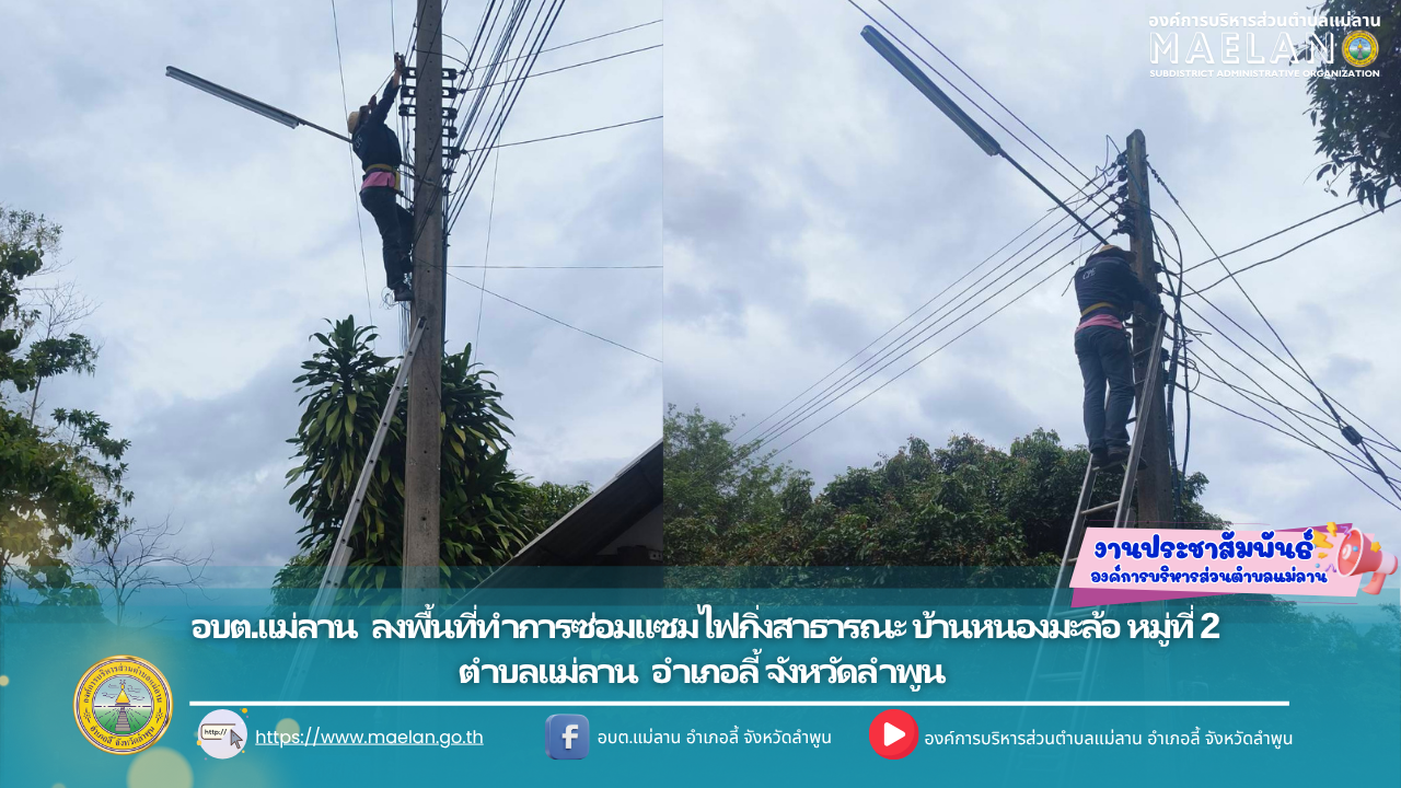 วันที่ 22 กรกฎาคม 2568 องค์การบริหารส่วนตำบลแม่ลาน โดย นายโสภณ มีมัง นายกองค์การบริหารส่วนตำบลแม่ลาน มอบหมายให้เจ้าหน้าที่กองช่างองค์การบริหารส่วนตำบลแม่ลาน ลงพื้นที่ทำการซ่อมแซมไฟกิ่งสาธารณะ บ้านหนองมะล้อ... [22 กรกฎาคม 2568]