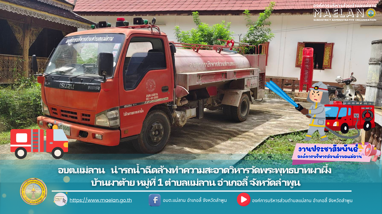 วันที่ 17 กรกฎาคม 2568 องค์การบริหารส่วนตำบลแม่ลาน โดยนายโสภณ มีมัง นายกองค์การบริหารส่วนตำบลแม่ลาน มอบหมายให้เจ้าหน้าที่องค์การบริหารส่วนตำบลแม่ลาน นำรถน้ำฉีดล้างทำความสะอาดวิหารวัดพระพุทธบาทผาผึ้ง... [17 กรกฎาคม 2568]