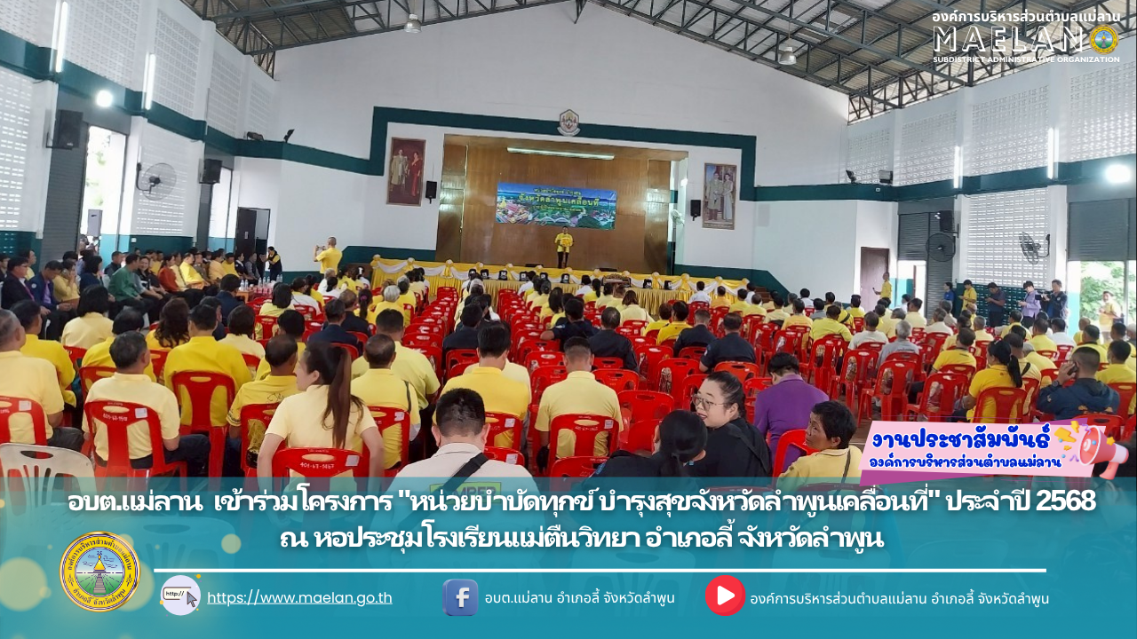 วันที่ 17 กรกฎาคม 2568 องค์การบริหารส่วนตำบลแม่ลาน นำโดย นายโสภณ มีมัง นายกองค์การบริหารส่วนตำบลแม่ลาน พร้อมด้วยคณะผู้บริหาร หัวหน้าส่วนราชการ ข้าราชการ และพนักงาน เจ้าหน้าที่องค์การบริหารส่วนตำบลแม่ลาน ... [17 กรกฎาคม 2568]