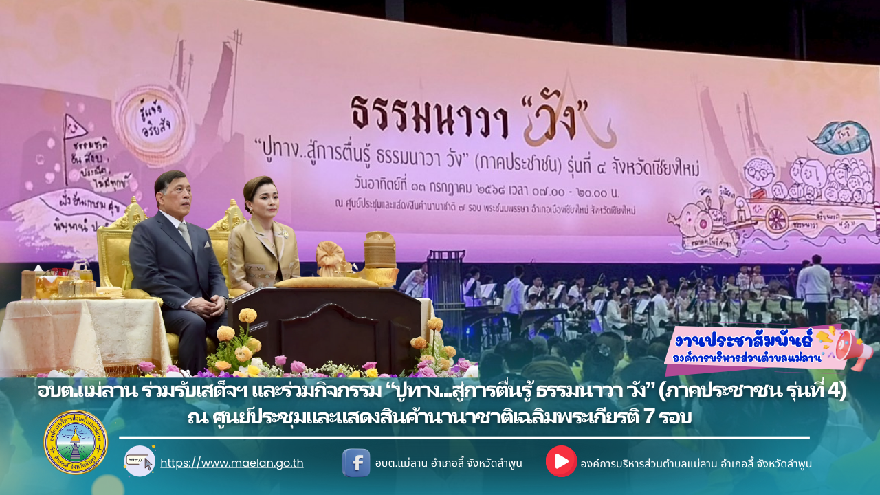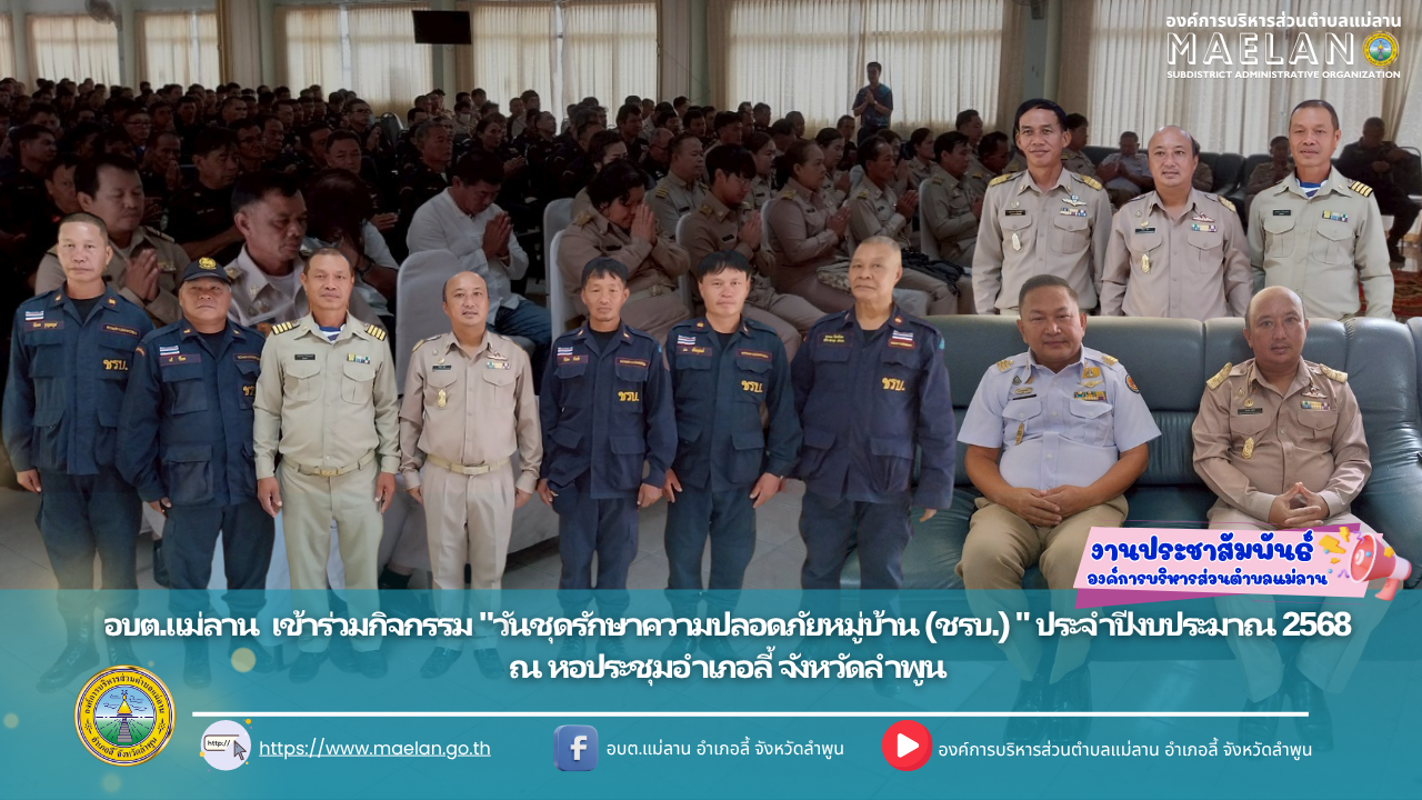 วันที่ 14 กรกฎาคม 2568 เวลา 15.00 น. องค์การบริหารส่วนตำบลแม่ลาน นำโดย นายโสภณ มีมัง นายกองค์การบริหารส่วนตำบลแม่ลาน พร้อมด้วย นายสมพงษ์ ด้วงประสิทธิ์ ปลัดองค์การบริหารส่วนตำบลแม่ลาน และ นายประวิทย์ ล่าเพ็ง... [14 กรกฎาคม 2568]