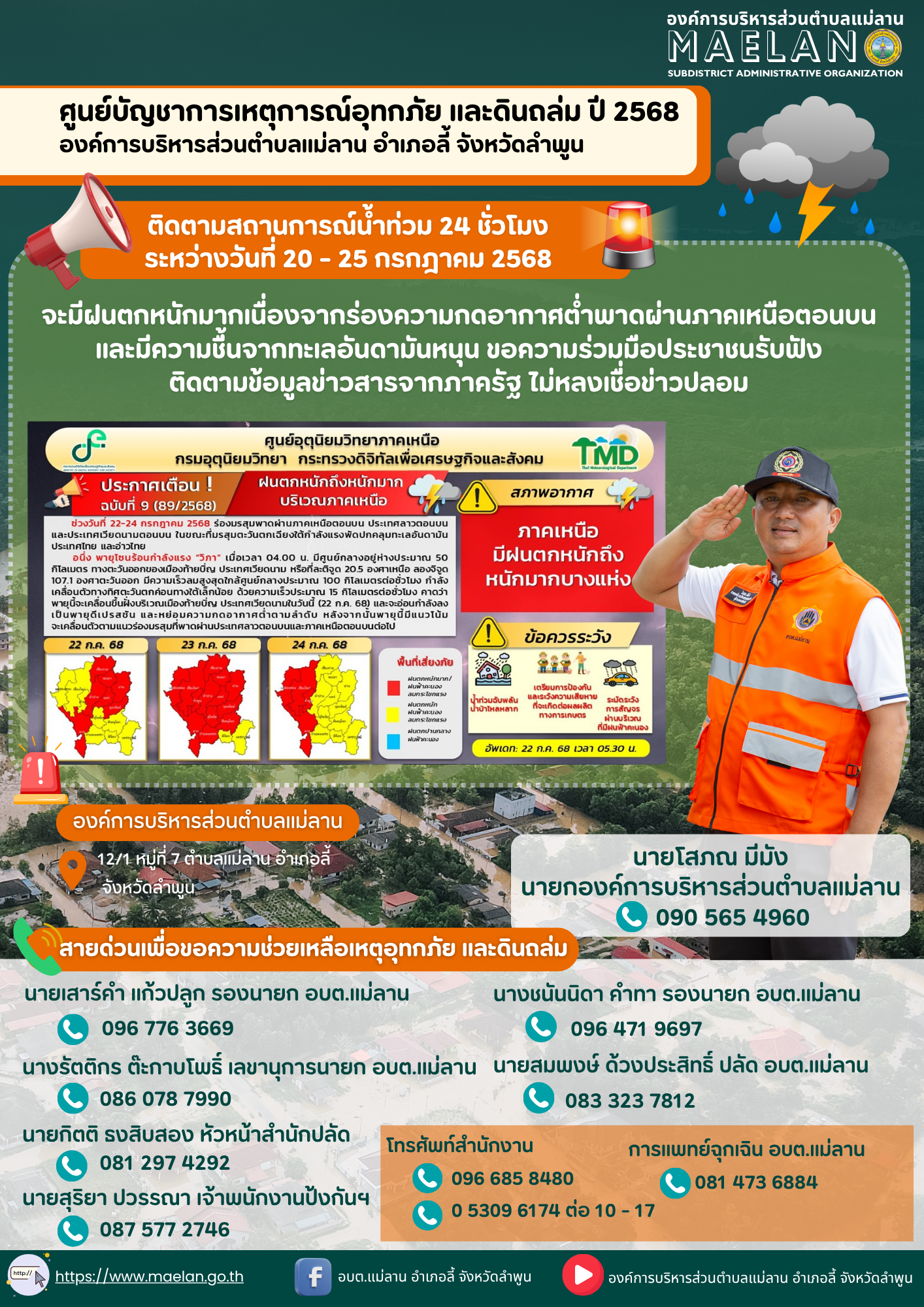 ติดตามสถานการณ์น้ำท่วม 24 ชั่วโมง ระหว่างวันที่ 20 - 25 กรกฏาคม 2568 [22 กรกฎาคม 2568]