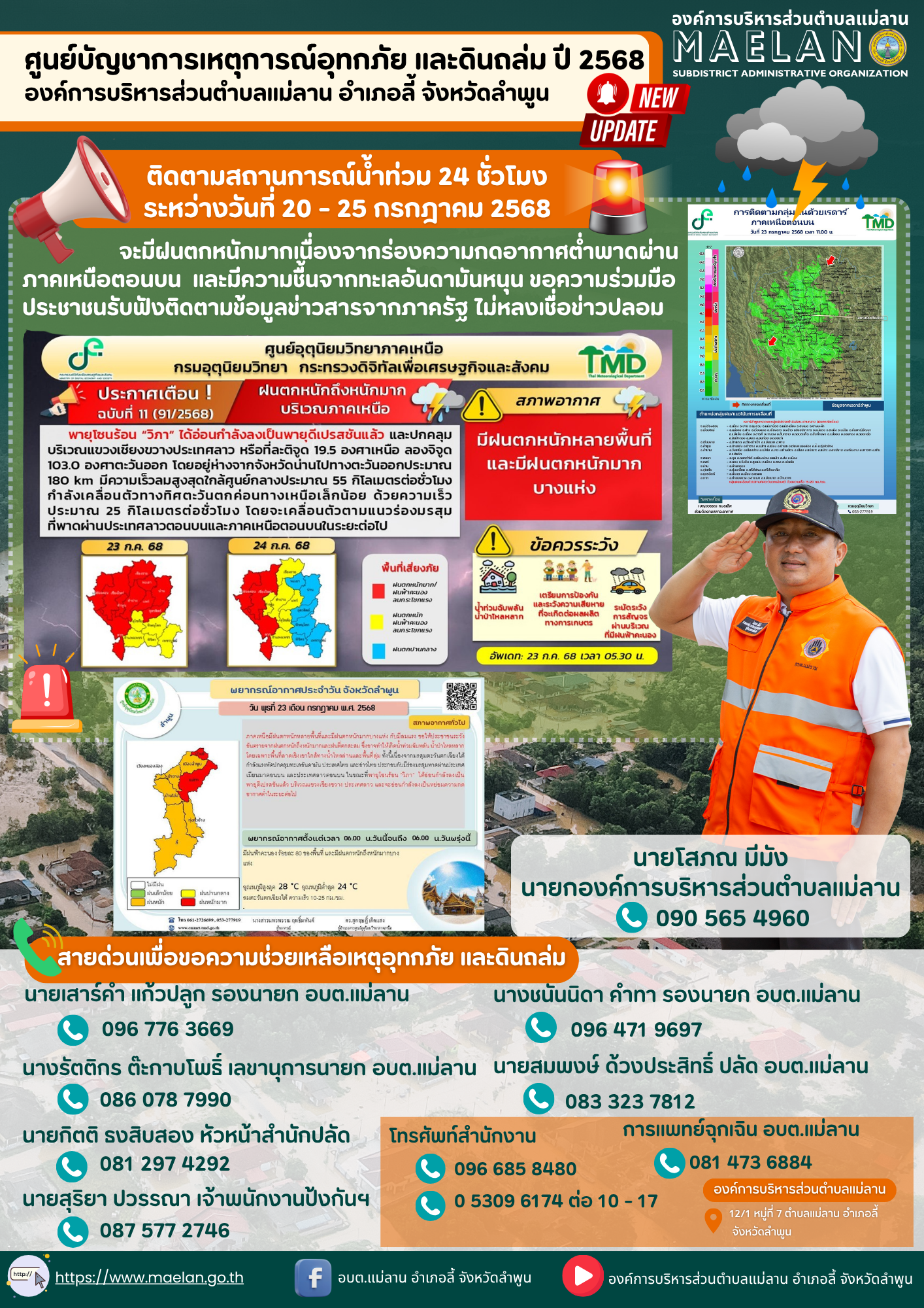 ประกาศประชาสัมพันธ์องค์การบริหารส่วนตำบลแม่ลาน [24 พฤษภาคม 2568]