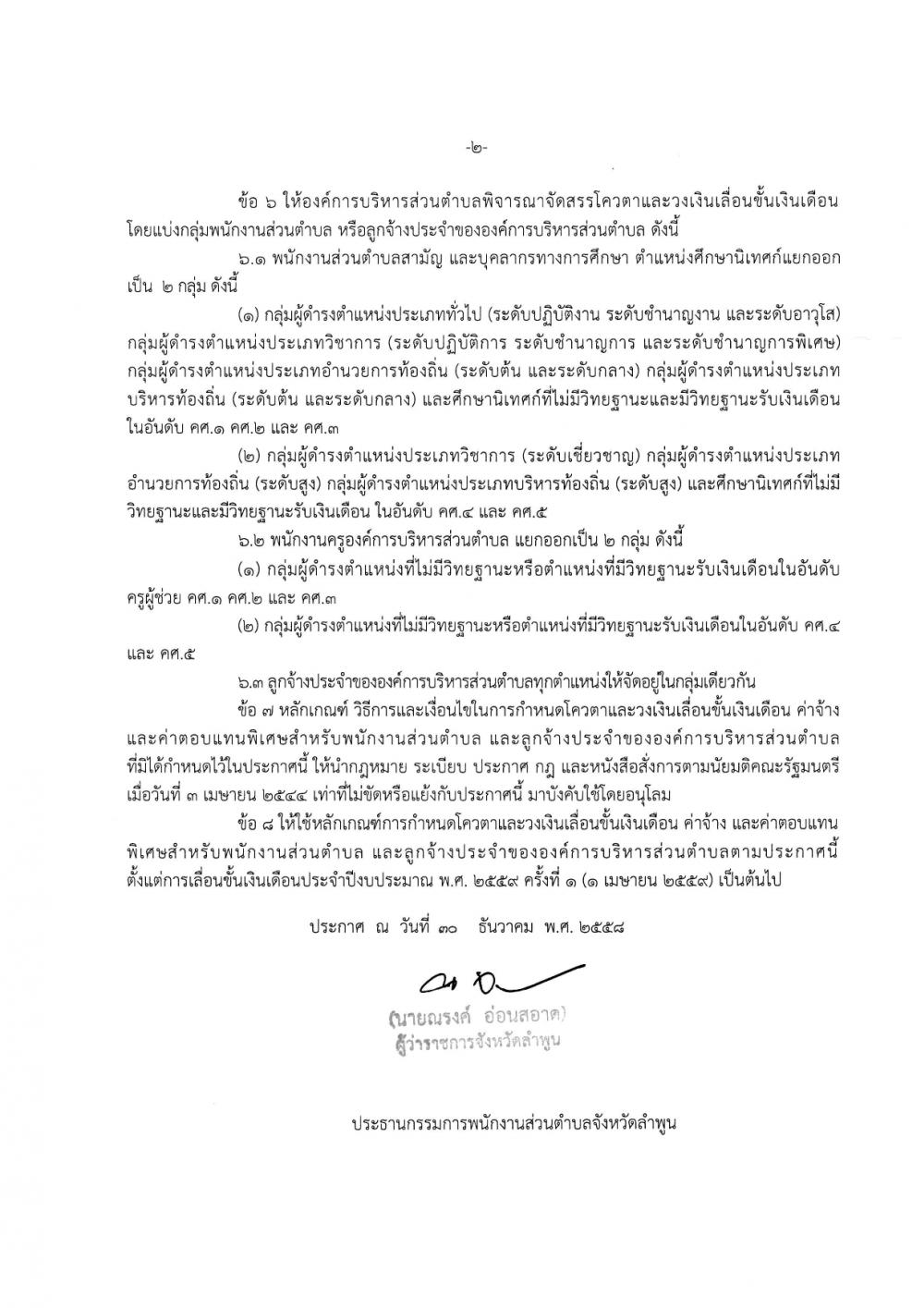 ประกาศ เรื่อง การกำหนดโคตาและวงเงินเลื่อนขั้นเงินเดือน ค่าจ้างและค่าตอบแทนพิเศษ สำหรับพนักงานส่วนตำบล และลูกจ้างประจำ